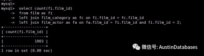 left join film_actor as fa on fa.film_id = fi.film_id and fa.film_id = 2;
