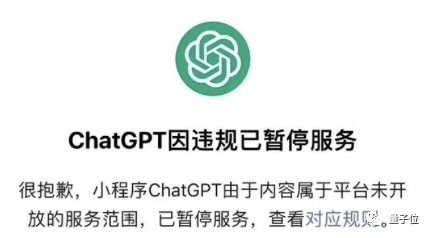 而之前流行一时的ChatGPT小程序也显示“由于内容属于平台未开放服务范围,已暂停服务”。