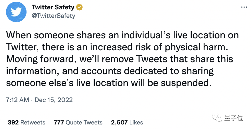 目前,推特已正式封禁所有分享实时位置信息的账户,包括一个日常曝光马斯克飞机行程的账号@ElonJet。