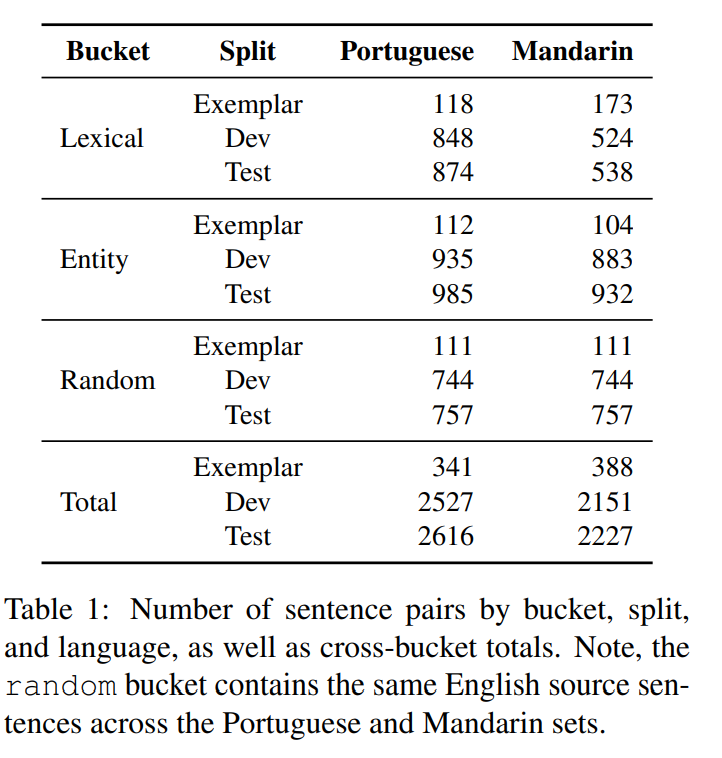 该数据集包括从英语到葡萄牙语和中文普通话的两个地区变体的专业翻译,源文档是为了能够详细分析感兴趣的现象,包括词汇上不同的术语和干扰术语。