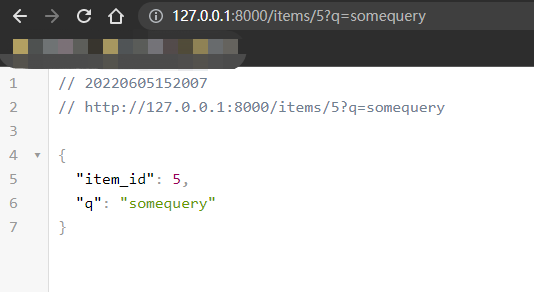 ,同时我们也可以在浏览器中输入http://127.0.0.1:8000/items/5?q=somequery