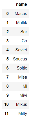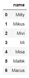 pd.read_sql("SELECT name FROM sweets WHERE name LIKE 'M_'", connector)