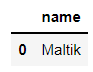 pd.read_sql("SELECT name FROM sweets WHERE cost = '100'", connector)output