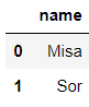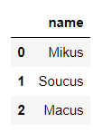 pd.read_sql("SELECT name FROM sweets WHERE name LIKE 'M%'", connector)output