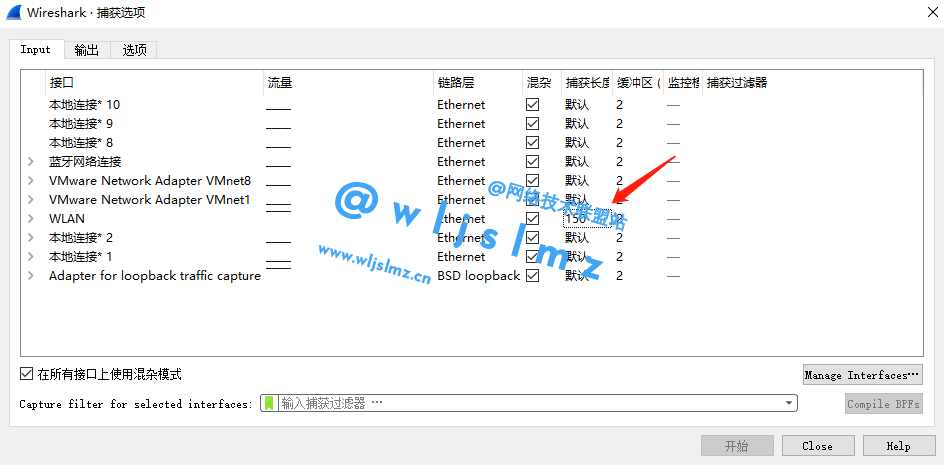 在“Input”页签中,我们看到“捕获长度”就是我们想要设置的地方: