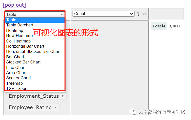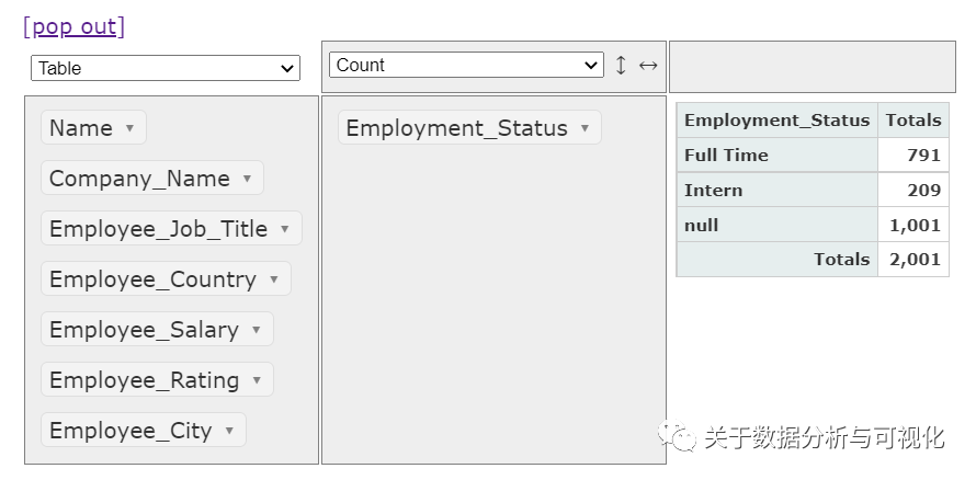 接下来我们进行分组(groupby)操作,例如我们想要查看一下员工状态(Employee_Status)的分组统计,只需要将该列拖拽至空白的区域即可