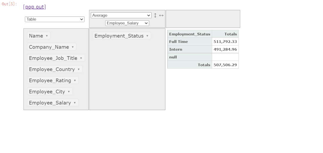 我们可以看到员工分为是全职员工以及实习生,分别是有791位和209位,当然除了计数(count)之外,我们还能够计算平均值、中位数、最大/最小值等一系列统计方法,例如我们想要计算一下全职员工和实习生的平均工资,就可以这么来操作