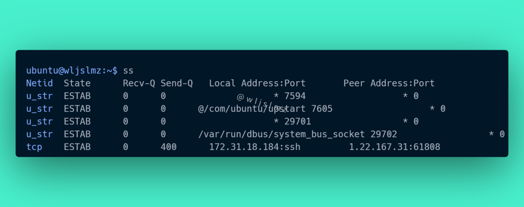 该ss命令的输出会很大,因此您可以使用“ ss | less”命令使输出可滚动。