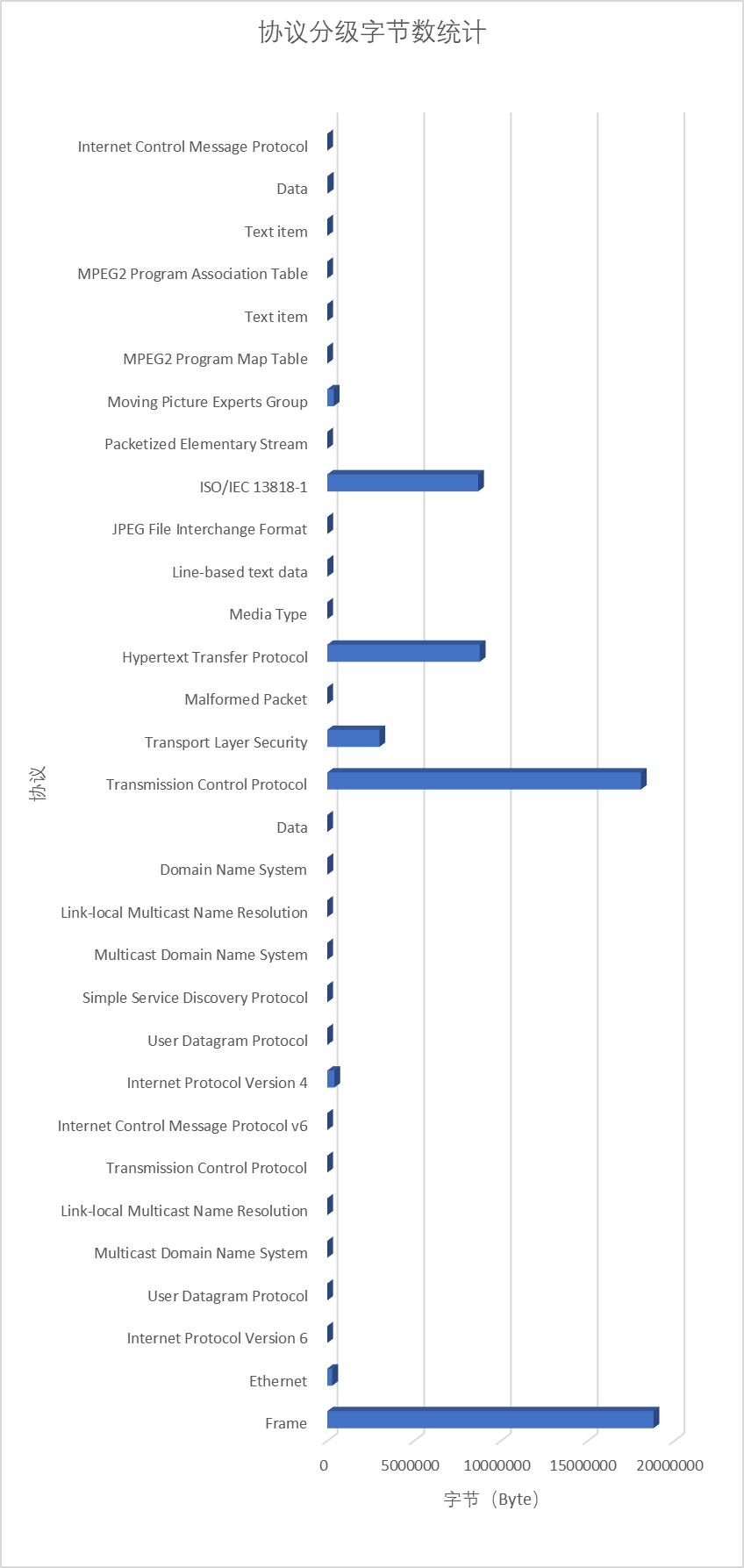 下面将上图中的协议分组统计中的字节一列单独提出,绘制柱状图如下: