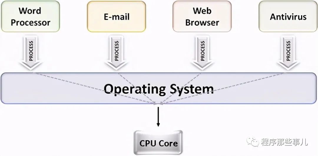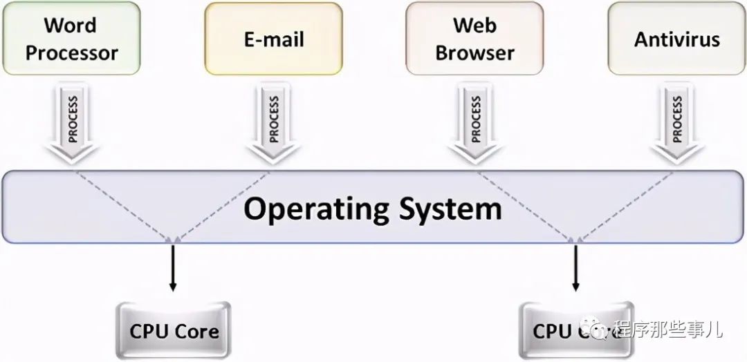 CPU执行多个程序靠的是它的时钟,通过时钟中断,它可以在不同的程序之间切换,这样看上去,我们的程序就彷佛在并行执行。