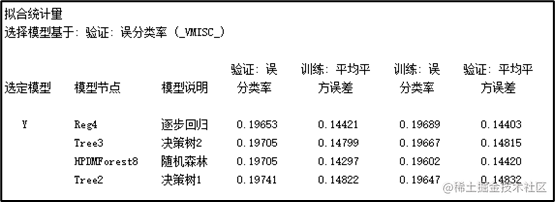 通过比较发现,Logistic回归具有最小的验证误分类率,为0.1965,其次是三分支决策树和随机森林,最差的为二分支决策树。