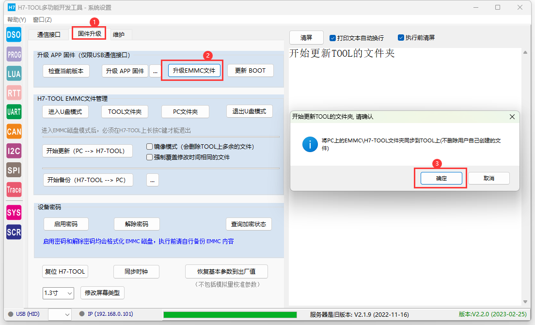 如果非常早期的客户(第1批TOOL用户,或者固件还是V1.X),继续点击此按钮升级。