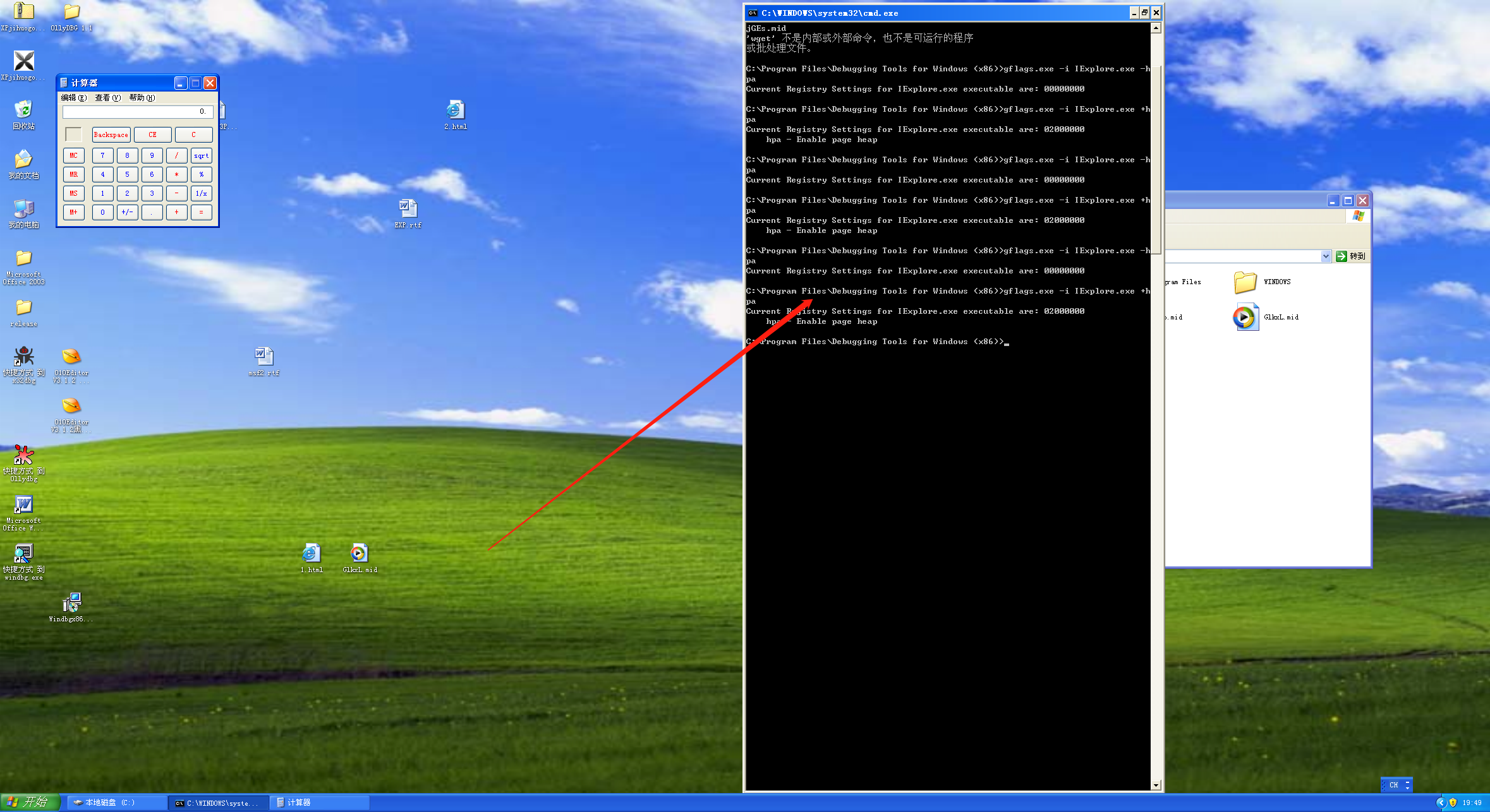 首先通过Windbg中一个组件gflags.exe开启IE页堆保护: