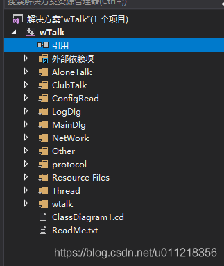 看上诉代码结构,可以看出来,代码分为:单人聊天模块,群组聊天模块,配置文件读取,登录界面,主界面,网络模块,网络模块里边分为UDP,TCP,协议模块,多线程模块,入口函数模块,Other为系统自带资源文件,预编译文件