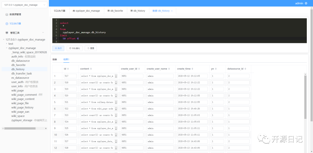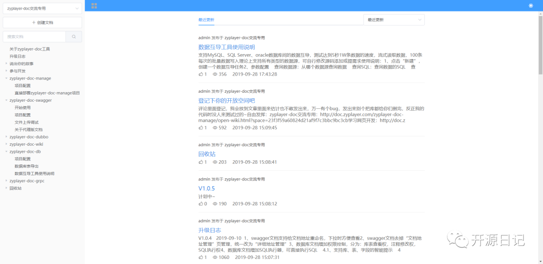 zyplayer-doc是一款前后端完全开源的在线文档工具,现有API接口文档(Swagger、OpenApi、自建接口)、WIKI文档、数据库文档(数据库表结构查看管理、SQL执行)。