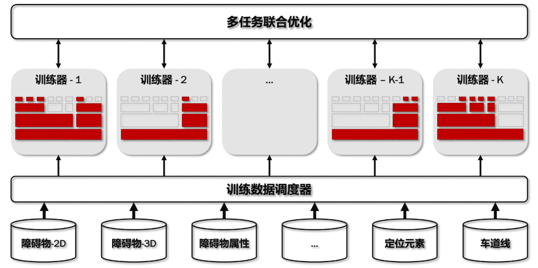 共享特征网络在提升推理效率的同时,也增加了感知任务之间的耦合度。而不同感知任务在数据规模、输入输出形式、优化目标等方面都存在不同程度的差异,这给离线训练带来了巨大挑战。