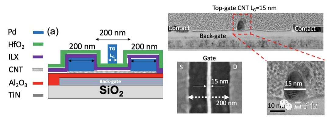 碳纳米管晶体管上同样采用了二氧化铪栅极电介质。但新的问题出现了: