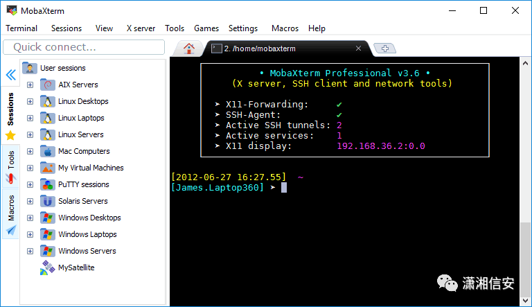 mobaxterm 的功能非常全面,几乎提供了所有重要的远程网络工具(比如 SSH、X11、RDP、VNC、FTP、MOSH 等),以及 Windows 桌面上的 Unix 命令(bash、ls、cat、sed、grep、awk、rsync 等),登录之后默认开启 sftp 模式。