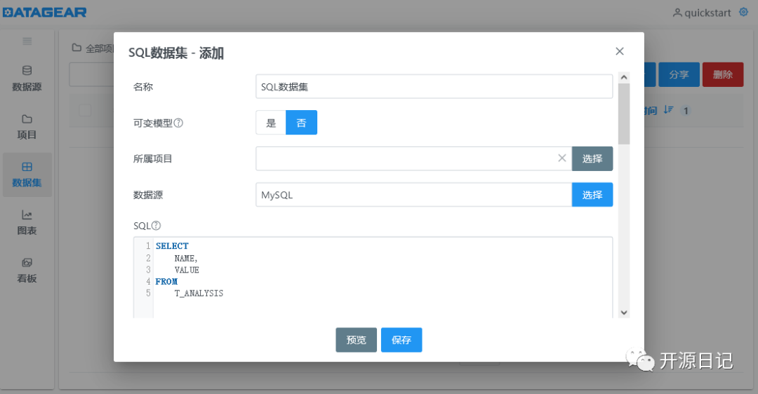 DataGear 是一款开源免费的数据可视化分析平台,自由制作任何您想要的数据看板,支持接入 SQL、CSV、Excel、HTTP 接口、JSON 等多种数据源。