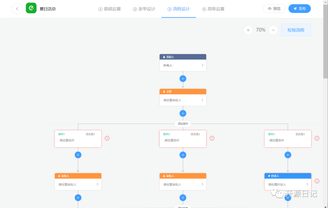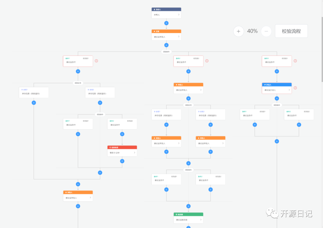 任意条件层级审批流程设计, 审批节点支持多种业务类型设置,支持流程校验