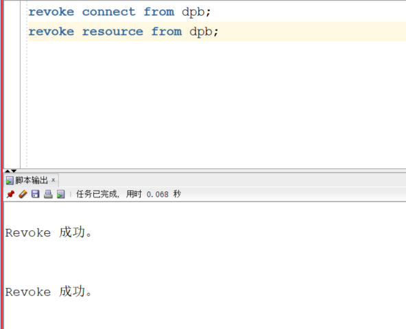 //回收权限 REVOKE 角色|权限 FROM 用户(角色) //修改用户的密码 ALTER USER 用户名 IDENTIFIED BY 新密码 //修改用户处于锁定(非锁定)状态 ALTER USER 用户名 ACCOUNT LOCK|UNLOCK