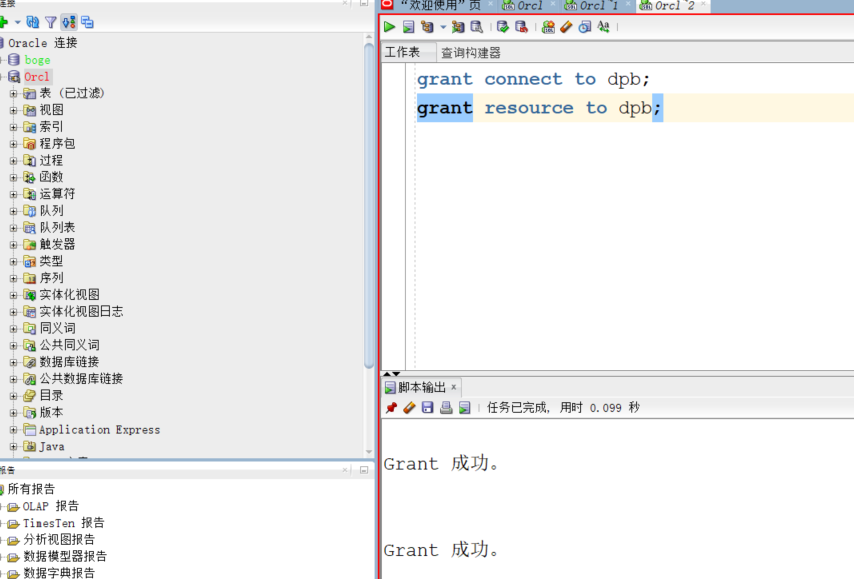 可以把某个权限授予某个角色,可以把权限、角色授予某个用户。系统权限只能由DBA用户授权,对象权限由拥有该对象的用户授权,授权语法是: