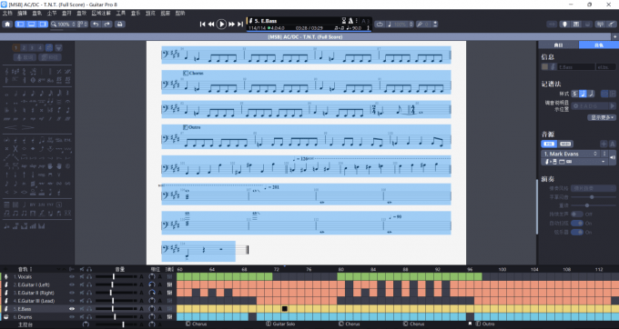 Guitar Pro8最大的特色就是可以直接用鼠标和键盘按标准的六线谱、四线谱进行乐谱输入、查看、打印和试听,可以实时、自动滚屏、多种模式的显示单声部或乐曲总谱,在做弹拨乐器的滑音、倚音、推弦、揉弦、泛音、摇把、闷音、琶音、分解和弦、BASS打弦等方面有绝对的优势。同时,Guitar Pro在吉他和弦、把位的显示、查询、推算、调用等方面,也非常的方便。 guitar pro是一款优秀的吉他学习辅助软件,无论是初学者还是吉他的资深玩家,都能够使用guitar pro帮助自己学习吉他弹奏。guitar pro作为一款专门为吉他打造的软件,自然是可以编写吉他和弦的,我们在guitar pro软件左侧可以添加音符来组成和弦,guitar pro简洁的界面,使得我们能够快速地制作出吉他和弦。