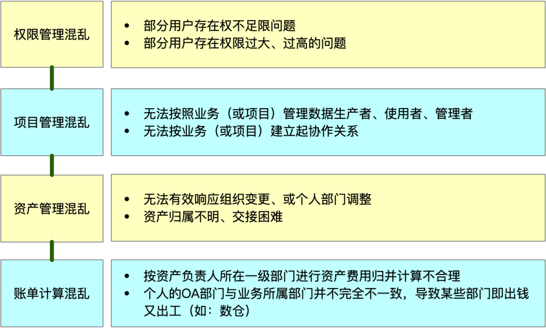 数据平台的用户的增长及业务的丰富,基于用户的数据安全模型体系难以支撑各种灵活多变业务需求,主要体现在: