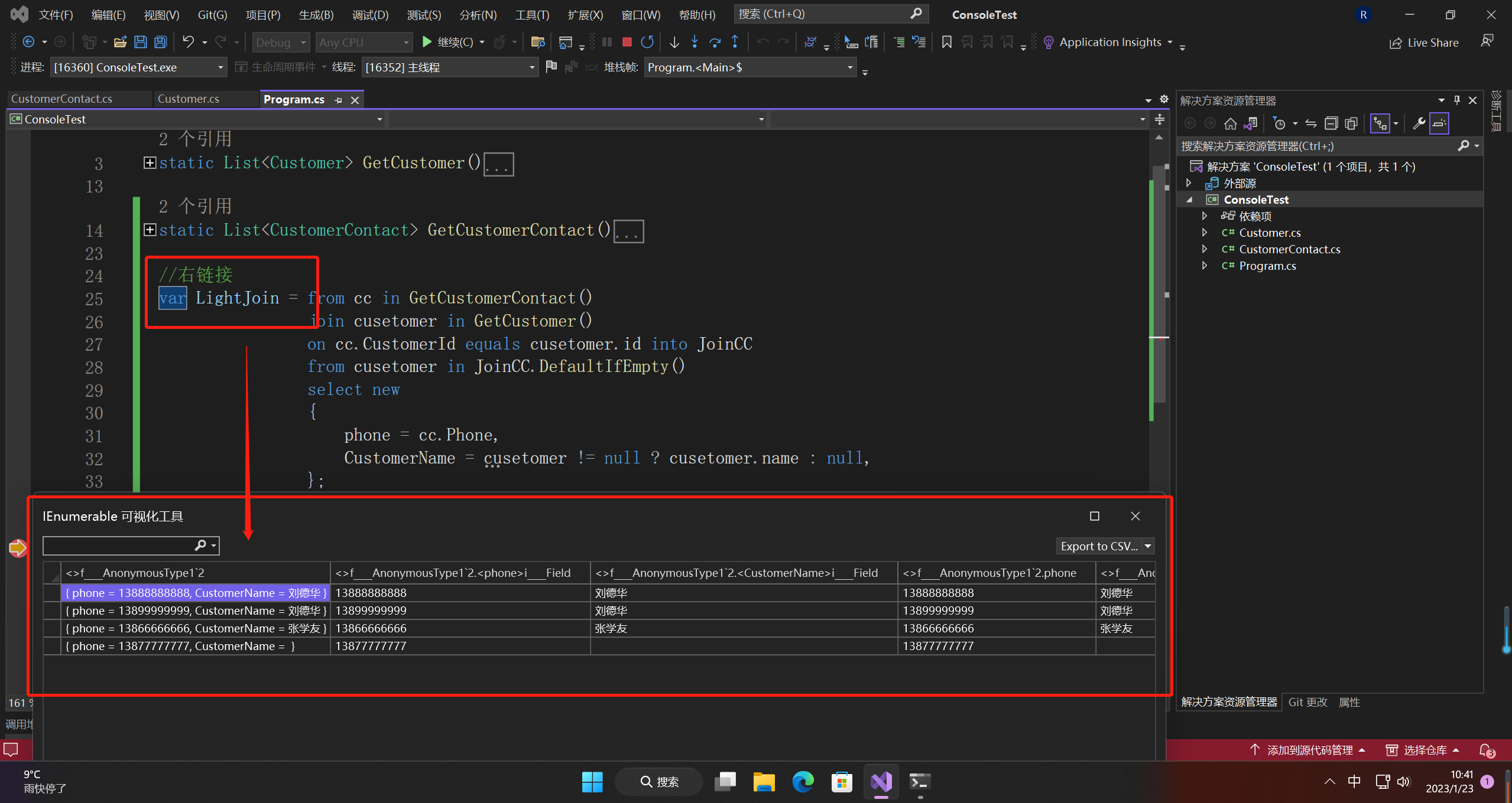 var LightJoin = from cc in GetCustomerContact()