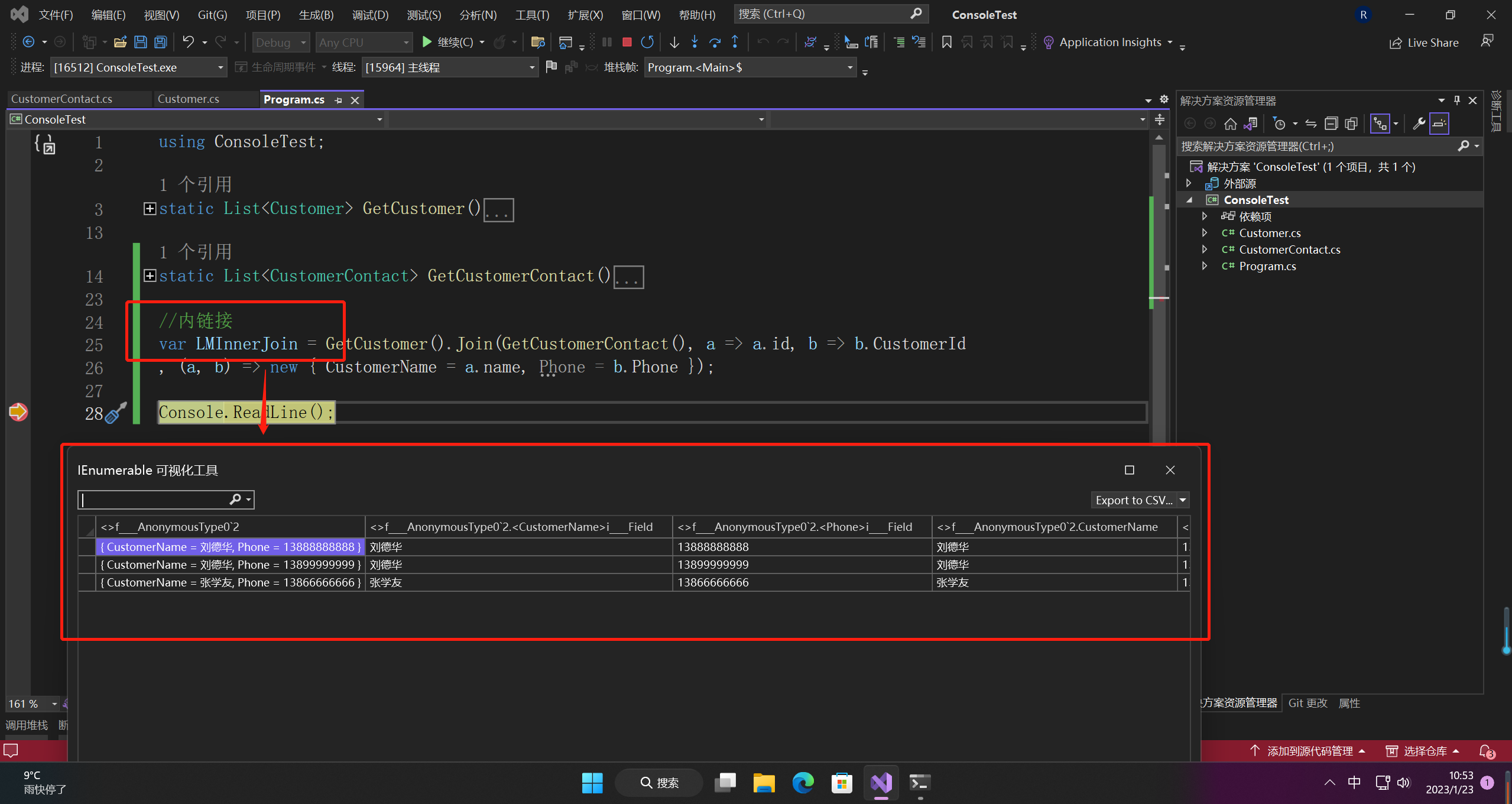 var InnerJoin = from cc in GetCustomerContact()