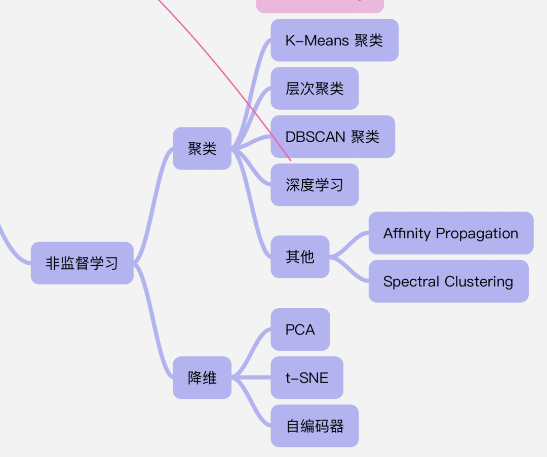 非监督学习的任务主要分为聚类和降维两类,常用的算法有: