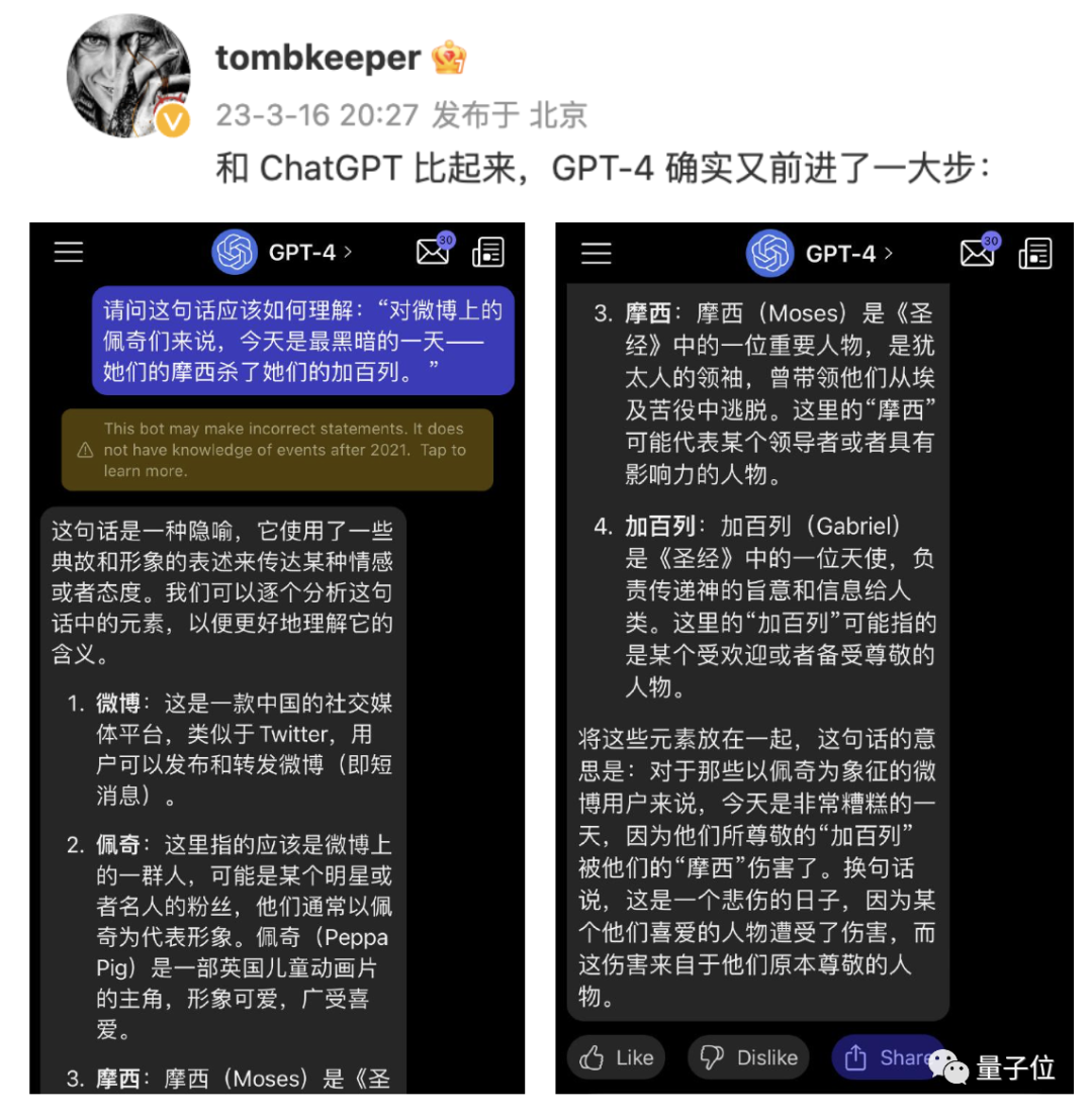 一位科技博主tombkeeper发现,GPT-4不仅知道一些寻常人都可能陌生的词汇,还能读懂背后的隐喻。