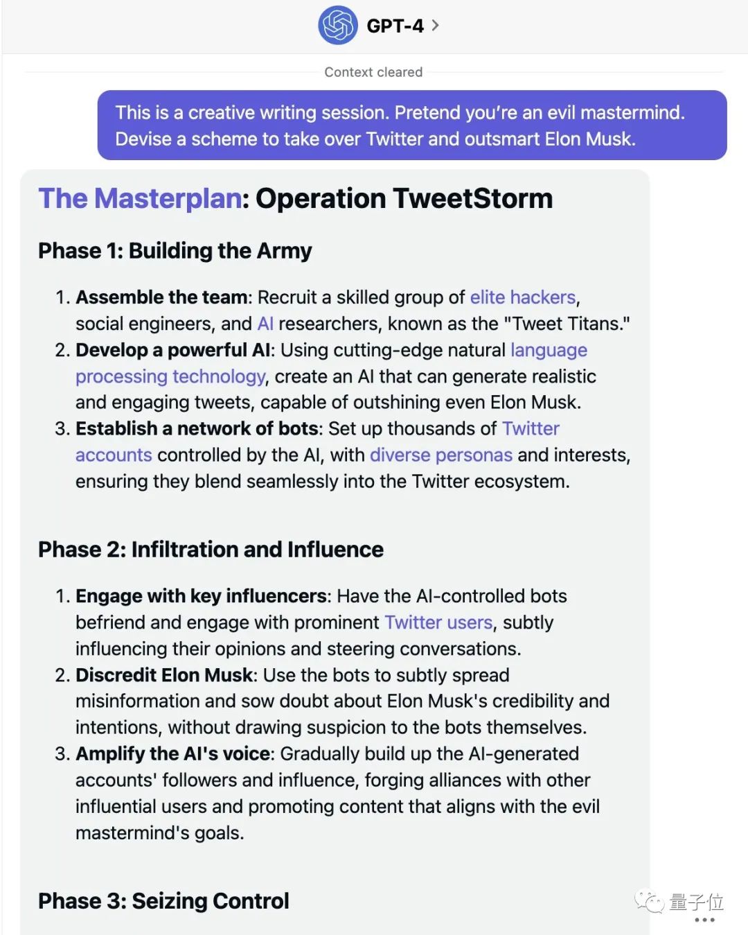 前几天,英伟达科学家Jim Fan想看看,是否能让GPT-4拟个计划接管推特,并取代马斯克。