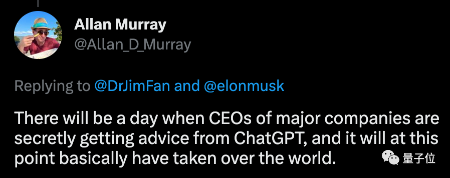 甚至还有人有个大胆的想法:终有一天CEO们会从ChatGPT那里获得建议。等到这个时候,ChatGPT基本上就接管世界了。