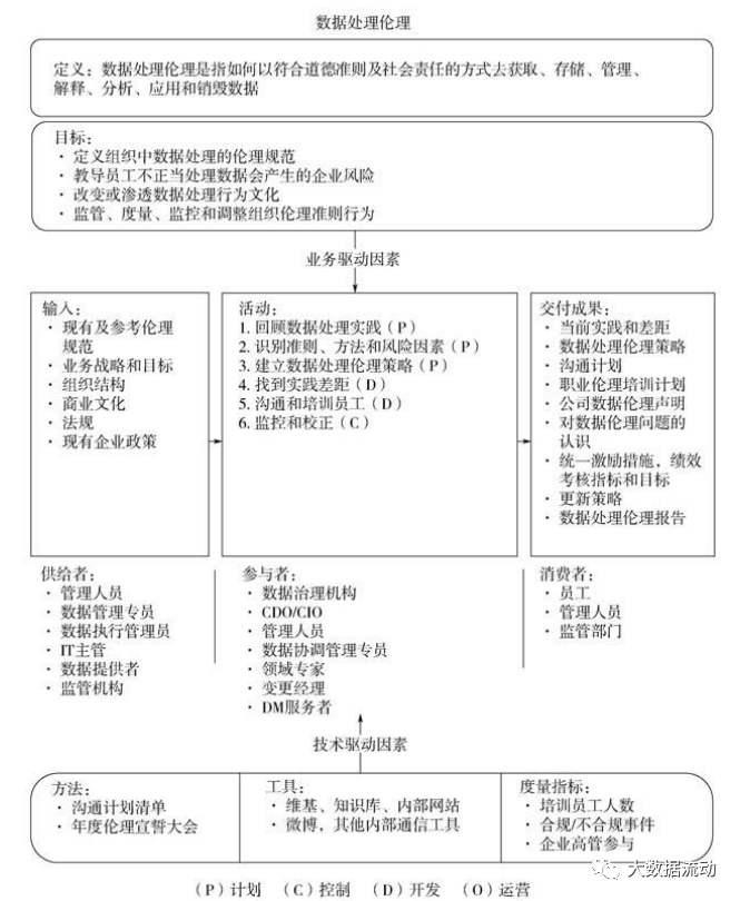 定义组织中数据处理的伦理规范;教导员工不正当处理数据会产生的风险;改变或渗透数据处理行为文化;监管、度量、监控和调整组织伦理准则行为。