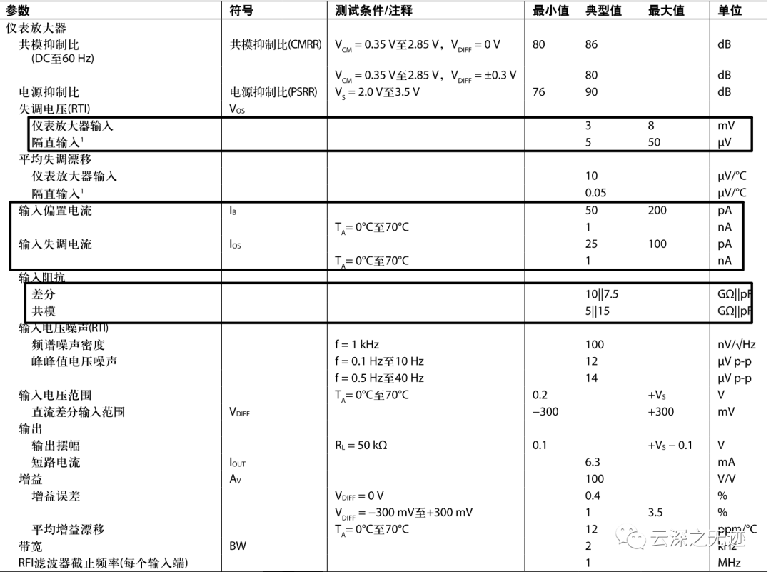 不出意料的是,这个东西也是有仪表放大器,看一些关心的参数就行