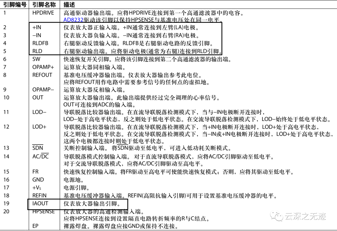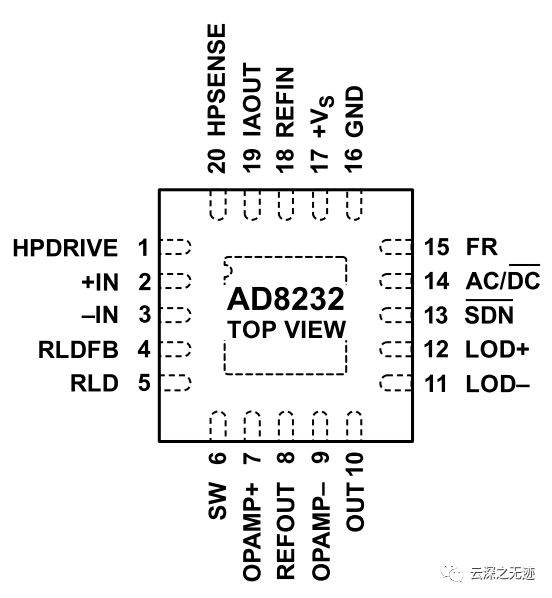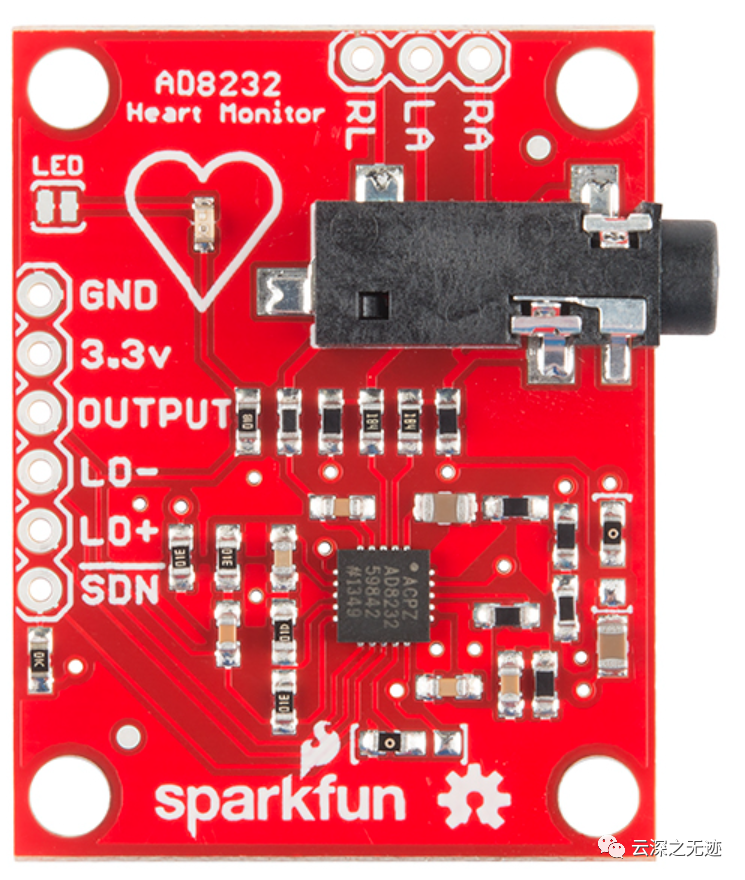 AD8232是一款集成前端,适用于对心脏生物电信号进行信号调理来进行心率监护。它内置一个专用仪表放大器(IA)、一个运算放大器(A1)、一个右腿驱动放大器(A2)和一个中间电源电压基准电压缓冲器(A3)。