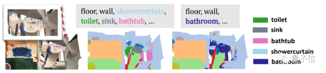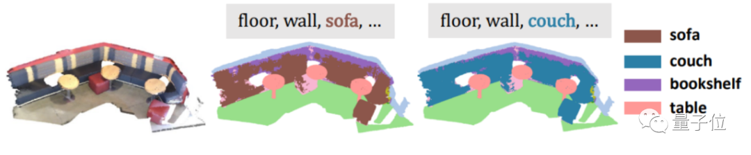 不需要人工标注,只需要一次训练,就能让3D模型理解语言并识别未标注过的类别。