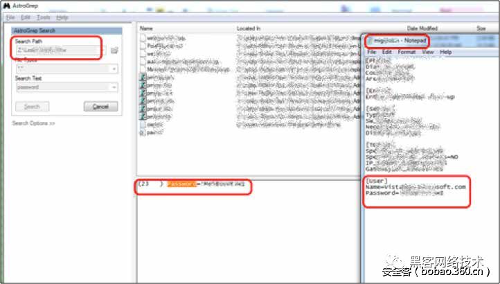 当找到我们开放的共享后我们要做的就是在这些共享中找一些有用的数据,比如一些账号密码等.我们可以使用 AstroGrep 来帮我们查找,它支持使用正则表达式来查找一些数据.