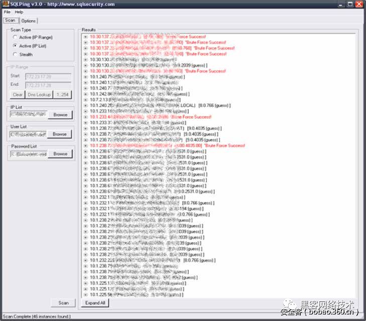 目前有很多方法和工具来帮着我们在网络中找到MS SQL server,并对他进行暴力破解.我最喜欢的一个工具是 SQLPing 3.0,它既可以用来发现网络中的MS SQL server,也可以对他进行暴力破解.使用这个工具你需要做的就是提供待扫描的IP地址,以及用于暴力破解的用户名和密码.注意: 在 Options 中把 Disable ICMP check选项选上.下面是一些使用的实例
