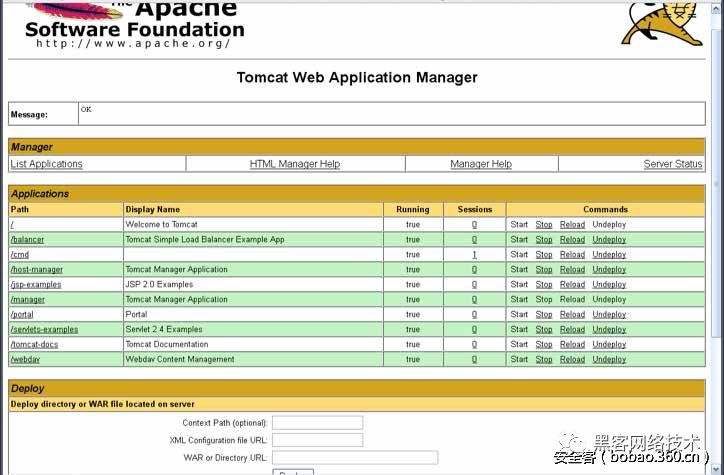 tomcat有些默认口令:admin/admin,tomcat/tomcat.而且进入tomcat的管理界面后我们就可以部署一个war包来拿到一个webshell,又tomcat往往运行在 SYSTEM权限所以我们也不用去考虑提权的问题.下面是一个实例