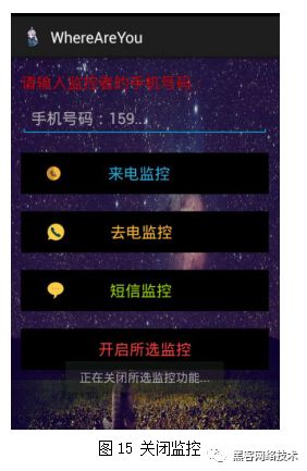 //关闭所选监控功能(执行完stopActivity(it);命令后会自动调用执行)