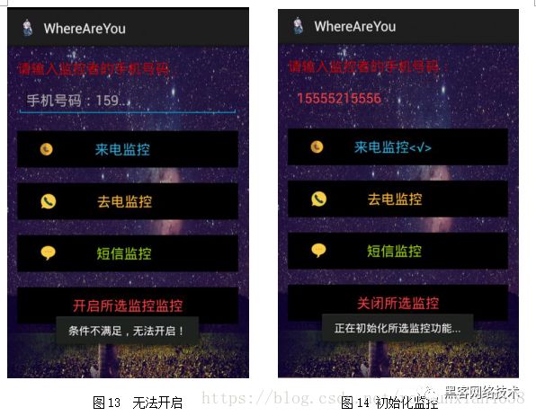 //开启所选监控功能(执行完startActivity(it);命令后会自动调用执行)