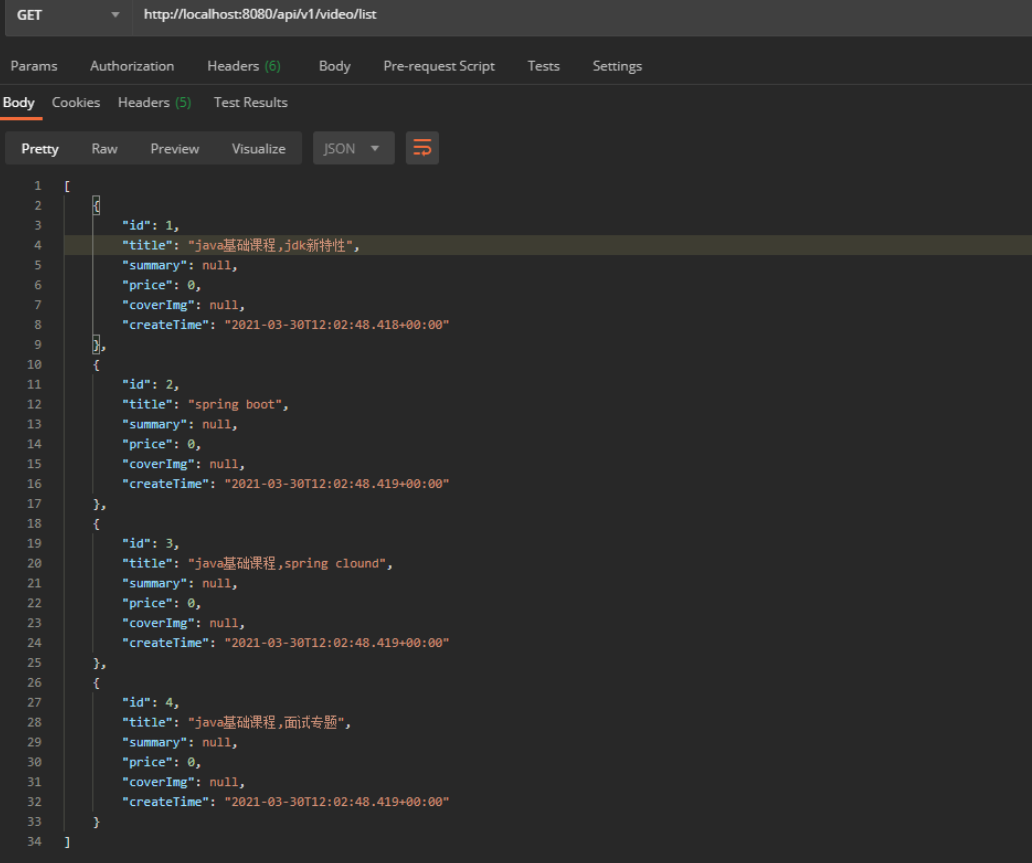 return JsonData.bulidSuccess(videoService.listVideo());