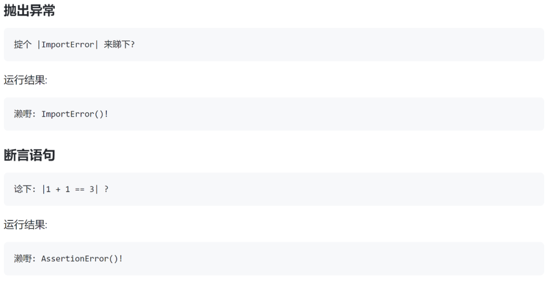 「掟个...... 来睇下」的作用是抛出一个异常,其中「掟」有仍或丢的意思。而「谂」的意思是「想」,让计算机作判断。
