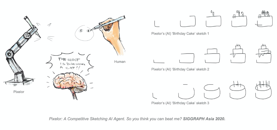 在这样的背景下,AI 能在你画我猜(Pictionary)游戏中表现优异的消息也就没有那么令人难以置信了。Pictionary 是一个受猜字游戏启发的游戏,需要一个人粗略地勾勒出视觉画像,其他人则试图以最快的速度猜出他/她画的是什么。这正是英国萨里大学 SketchX 实验室的研究人员近期的研究成果:一种对速度敏感并以竞争驱动的草图生成 AI——Pixelor。即给定一个视觉概念,Pixelor 能够像人类竞争者一样快速甚至更快地画出一幅人类和机器均能识别的目标对象草图。