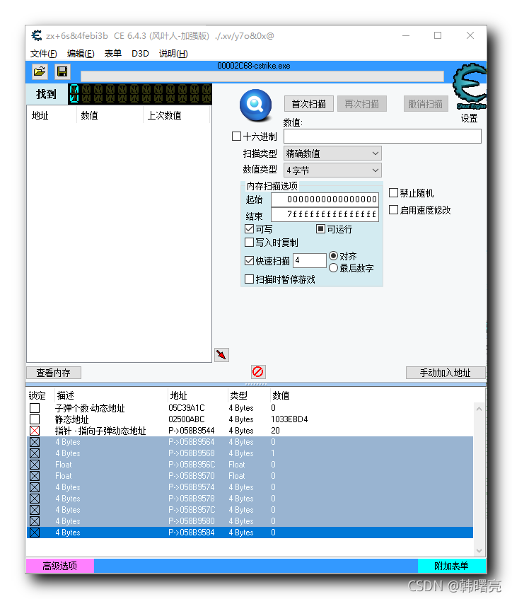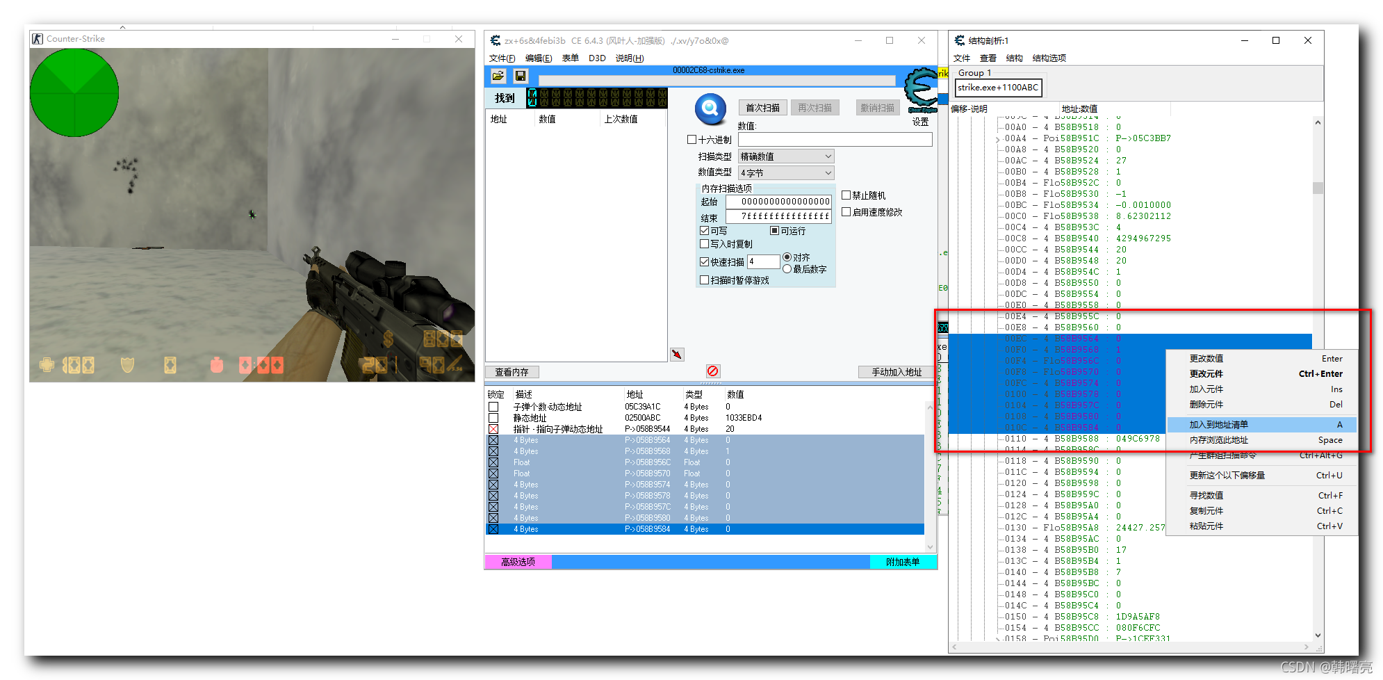 选中 后坐力数据 相关地址 , 加入到地址清单 中 ;