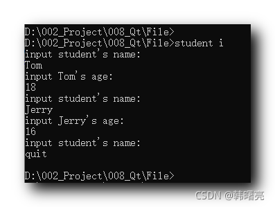 // 如果用户输入 quit , 则退出循环 , 保存文件