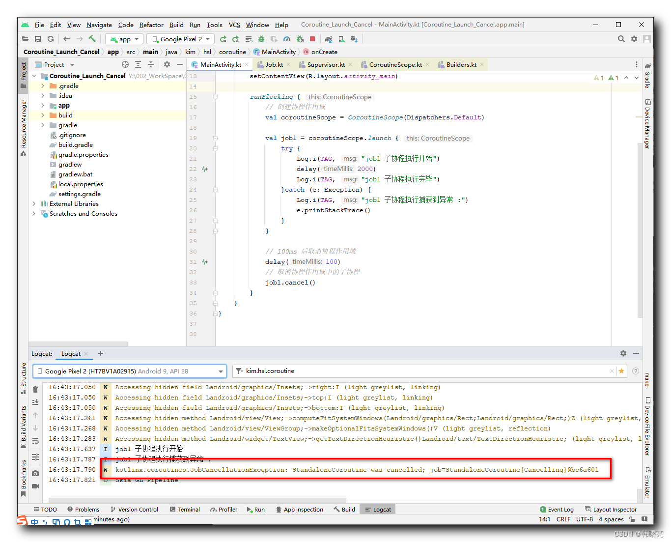 // 取消协程作用域中的子协程
