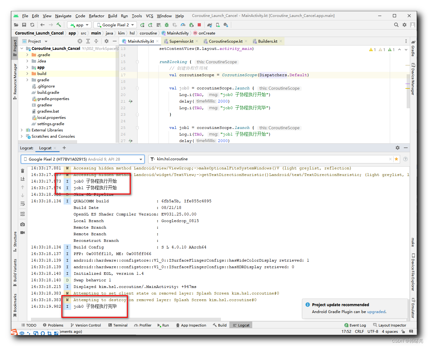 Log.i(TAG, "job0 子协程执行完毕")